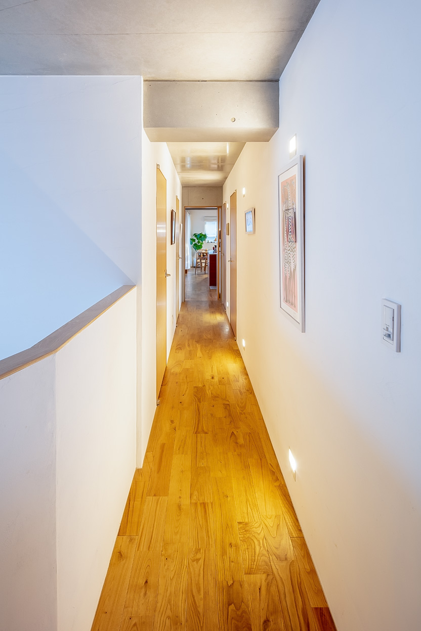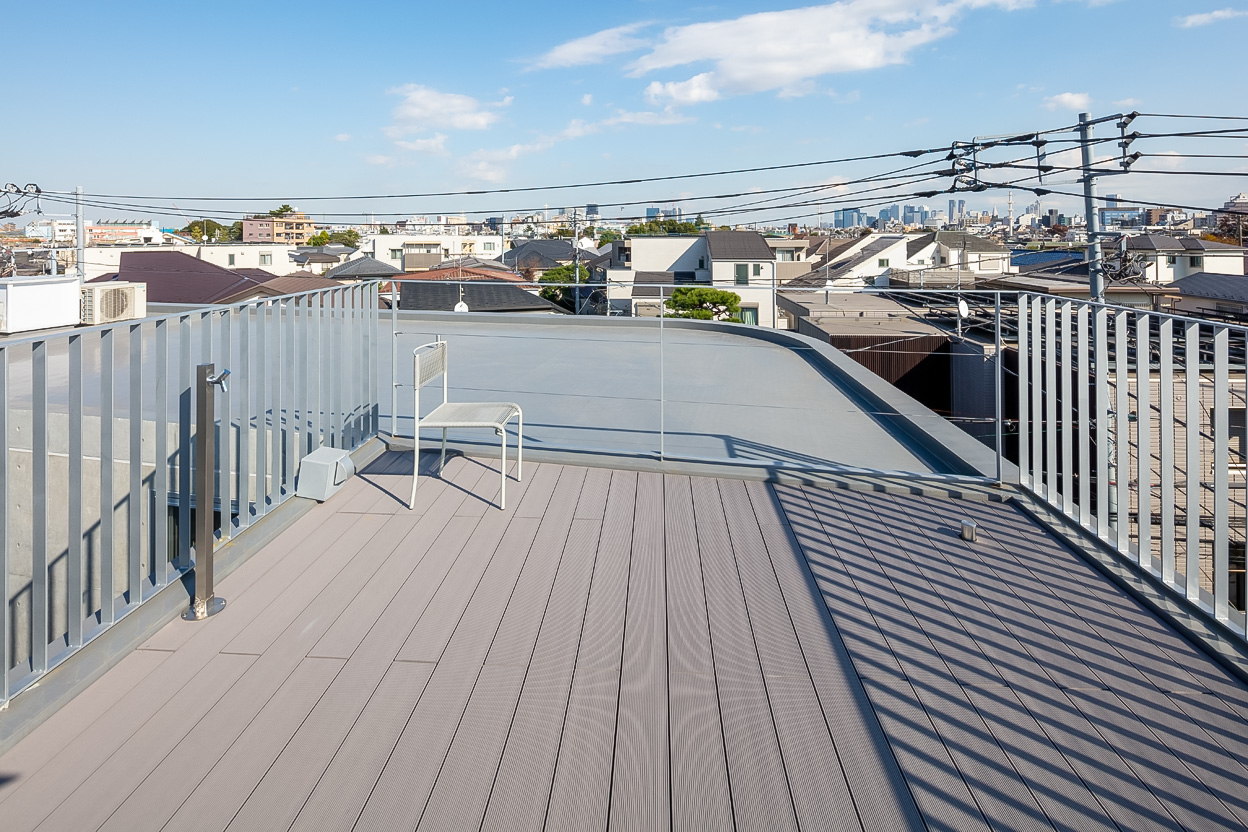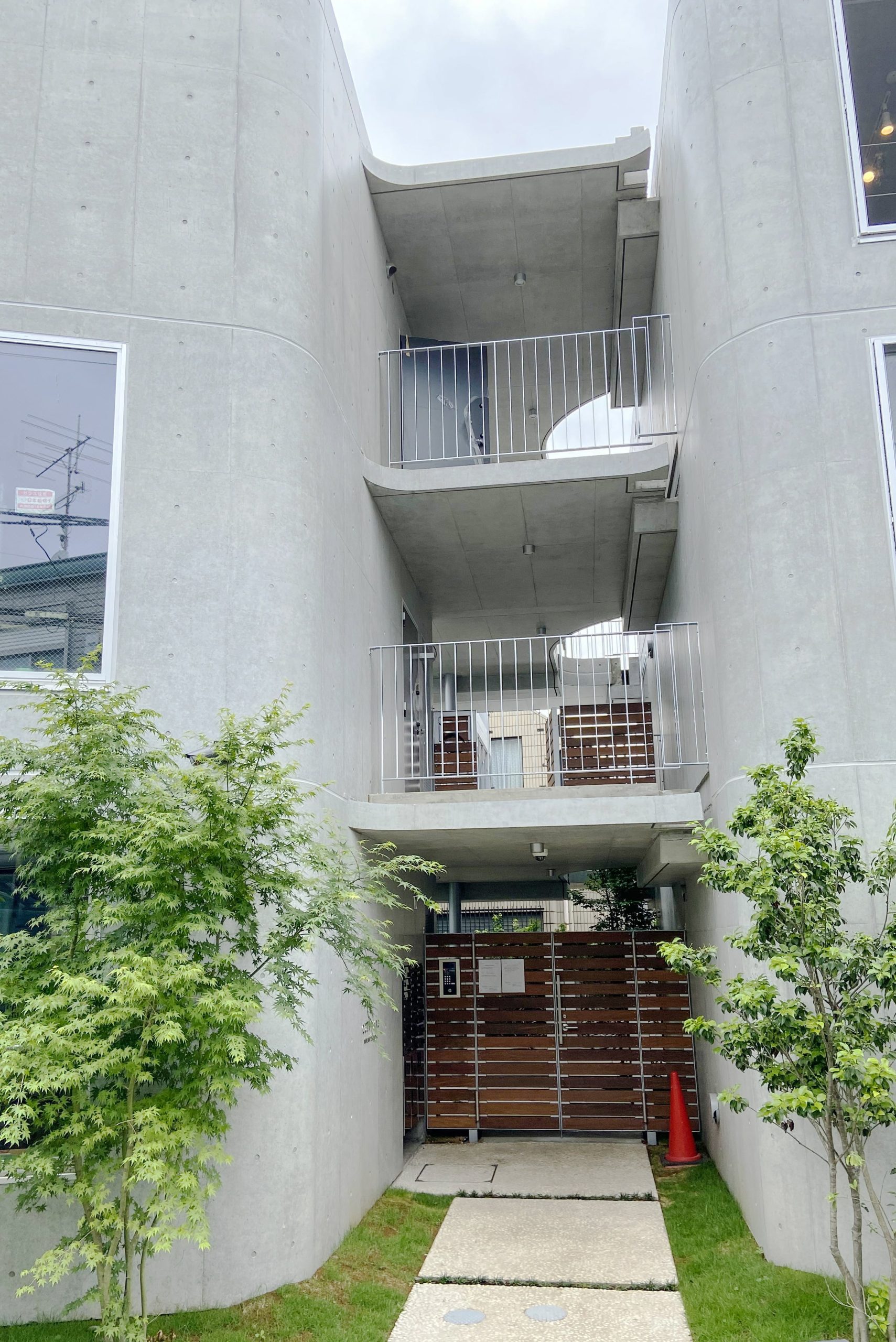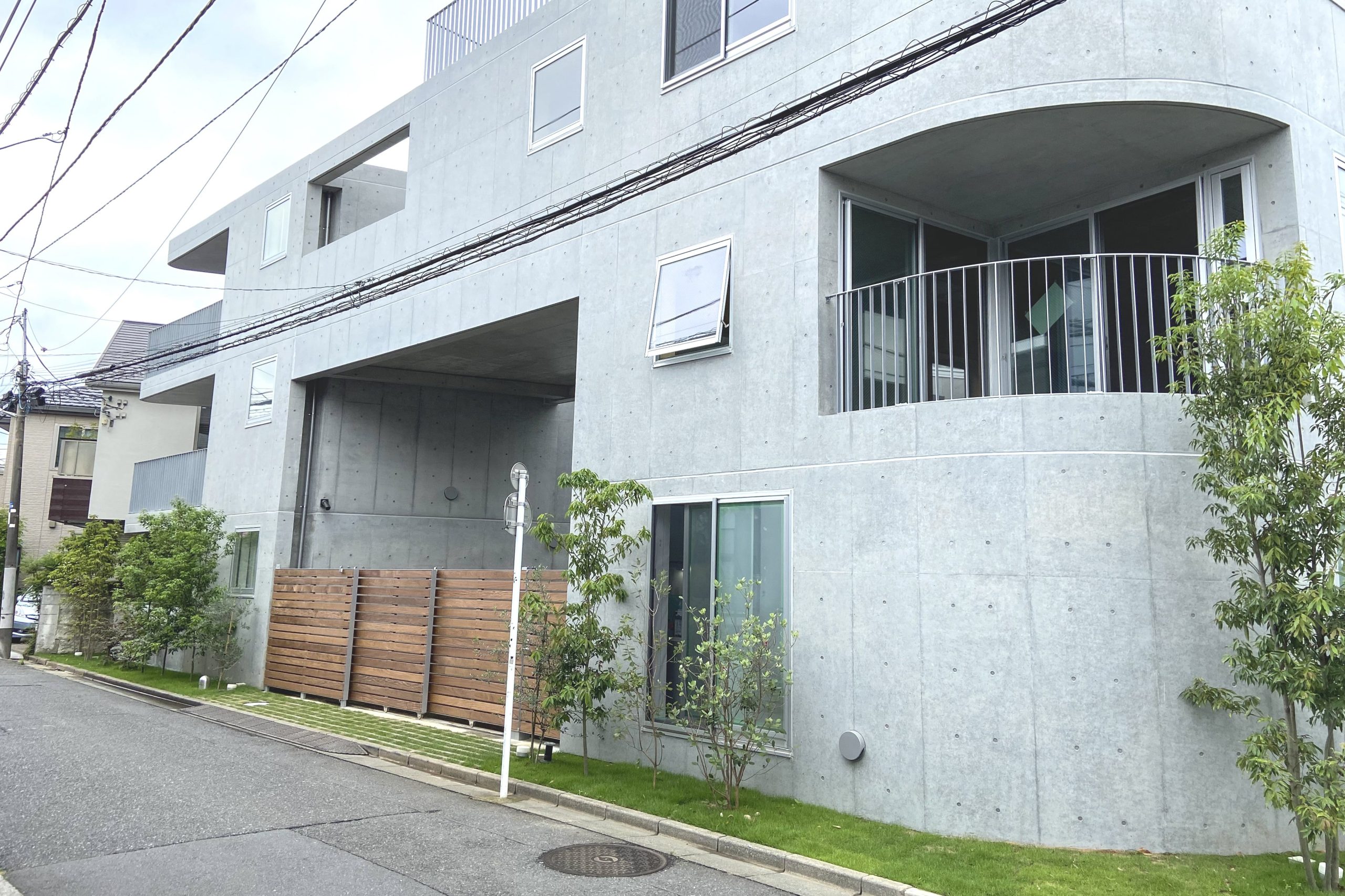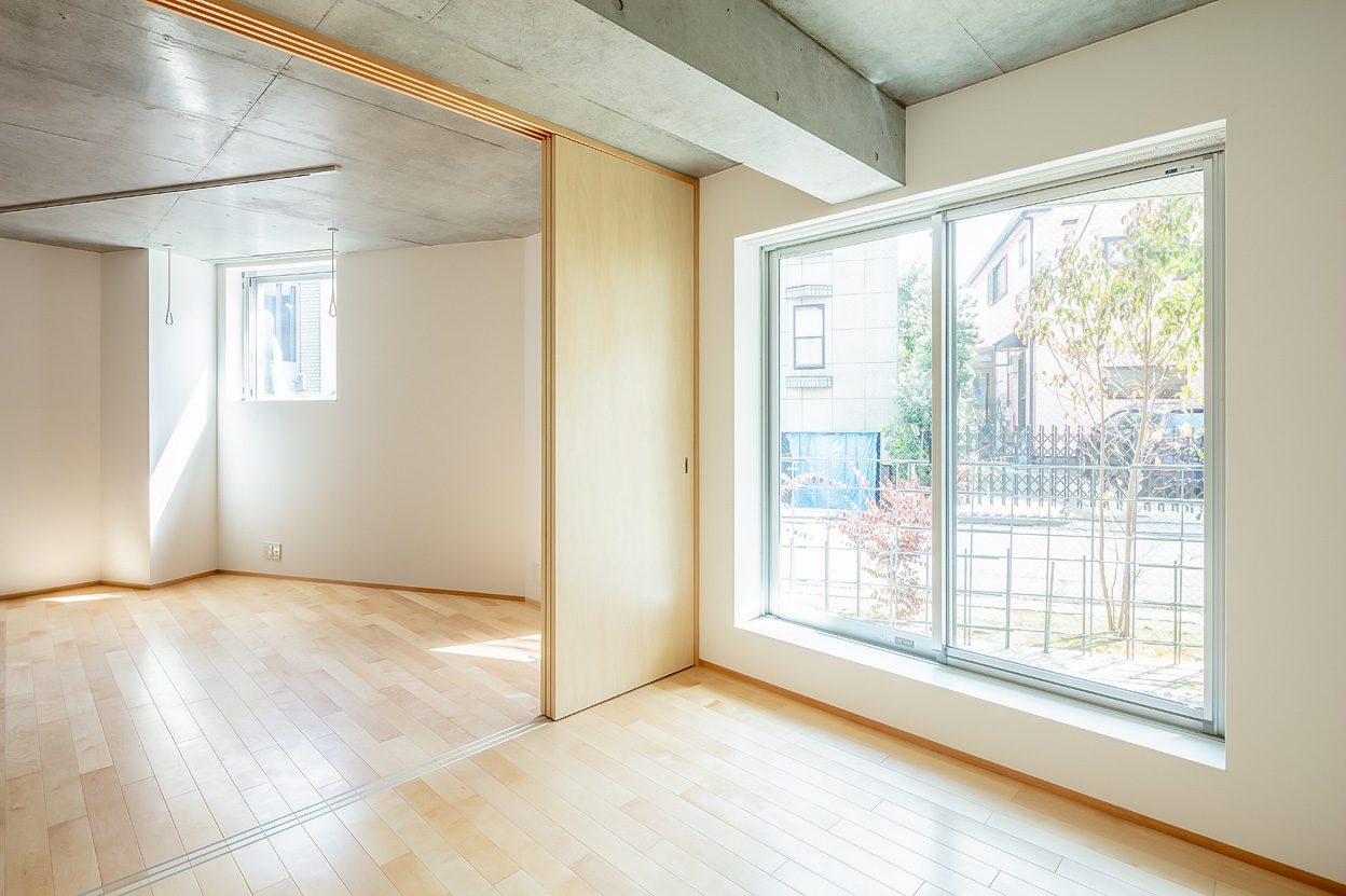 Three storeys were secured while keeping the height as low as possible so as not to disrupt the streetscape of the surrounding buildings. The building is divided into three buildings, which are arranged in a ‘C’ shape on the trapezoidal site, leaving a courtyard that opens onto the road on the south side. There used to be a lush green garden on this site. The trees in it were relocated during construction and returned to this courtyard after the building was completed. The courtyard is connected to the road by a gate that can be opened and closed, providing not only a pleasant environment for the residents, but also an event space for flea markets and other events in which the neighbourhood can participate. It is hoped that the greenery in the courtyard will gradually take root and flourish together with the residents of this building.