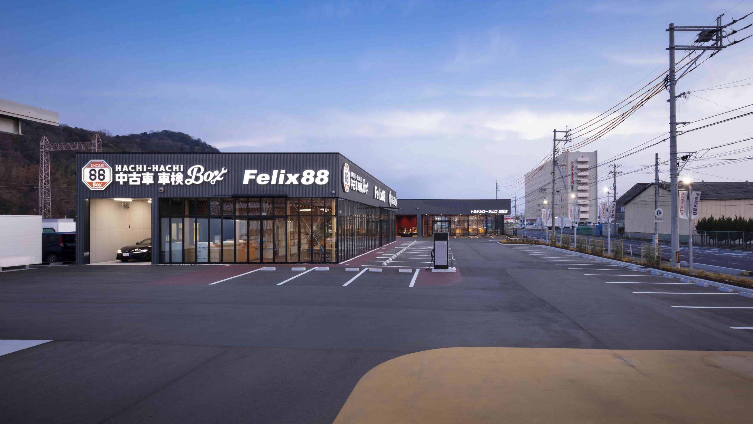 山口県岩国市に計画されたカーディーラー、バーガーショップなどを含む複合施設である。