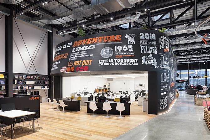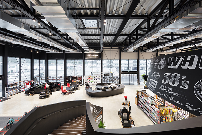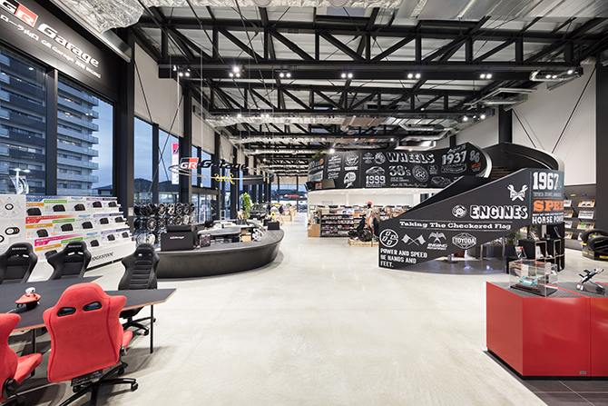 自動車好きが集まる「みんなのガレージ」をコンセプトに建てられたカーショップと整備工場を含む複合施設である。建物の中に建物を入れ子状に作り、訪れた人たちがあたかもサーキットのようにぐるぐる回りながら車を楽しむ様々なものに出会える空間となった。これは、「Oeuf(2011年)」と同じコンセプトであり、それをずっと大きくしたものである。