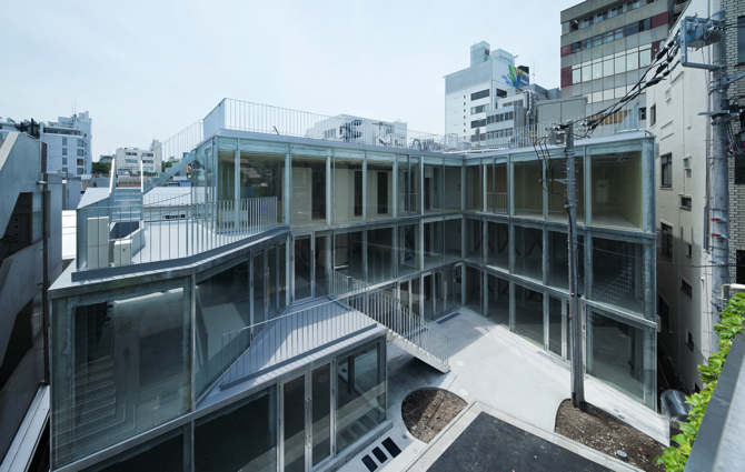 The complex was planned to face an L-shaped alleyway running from Omotesando to Uraharajuku in Tokyo.