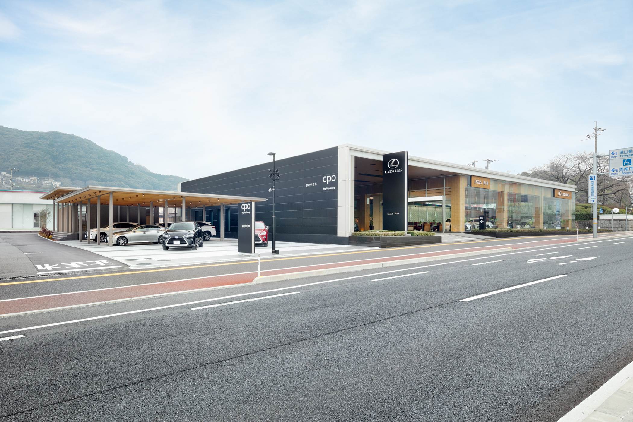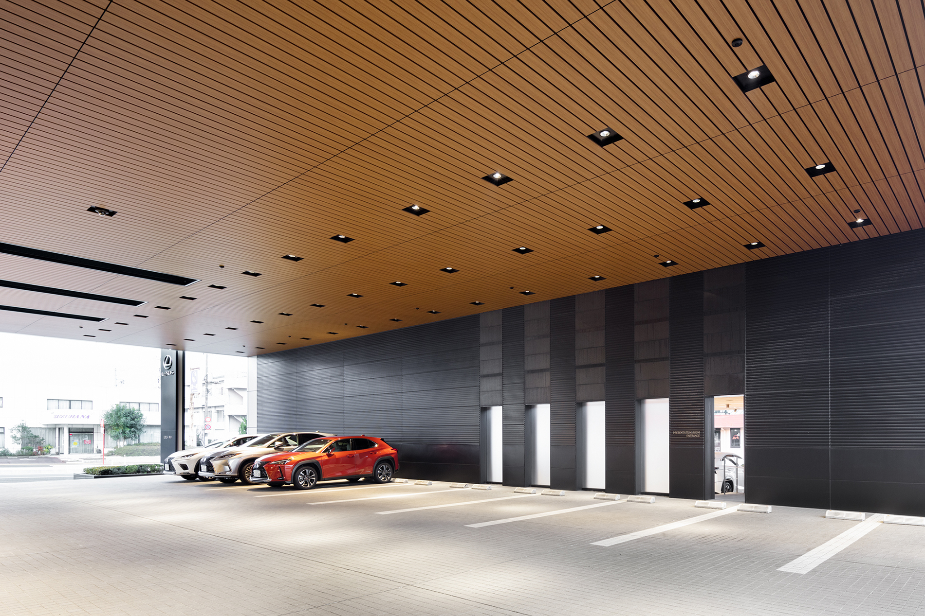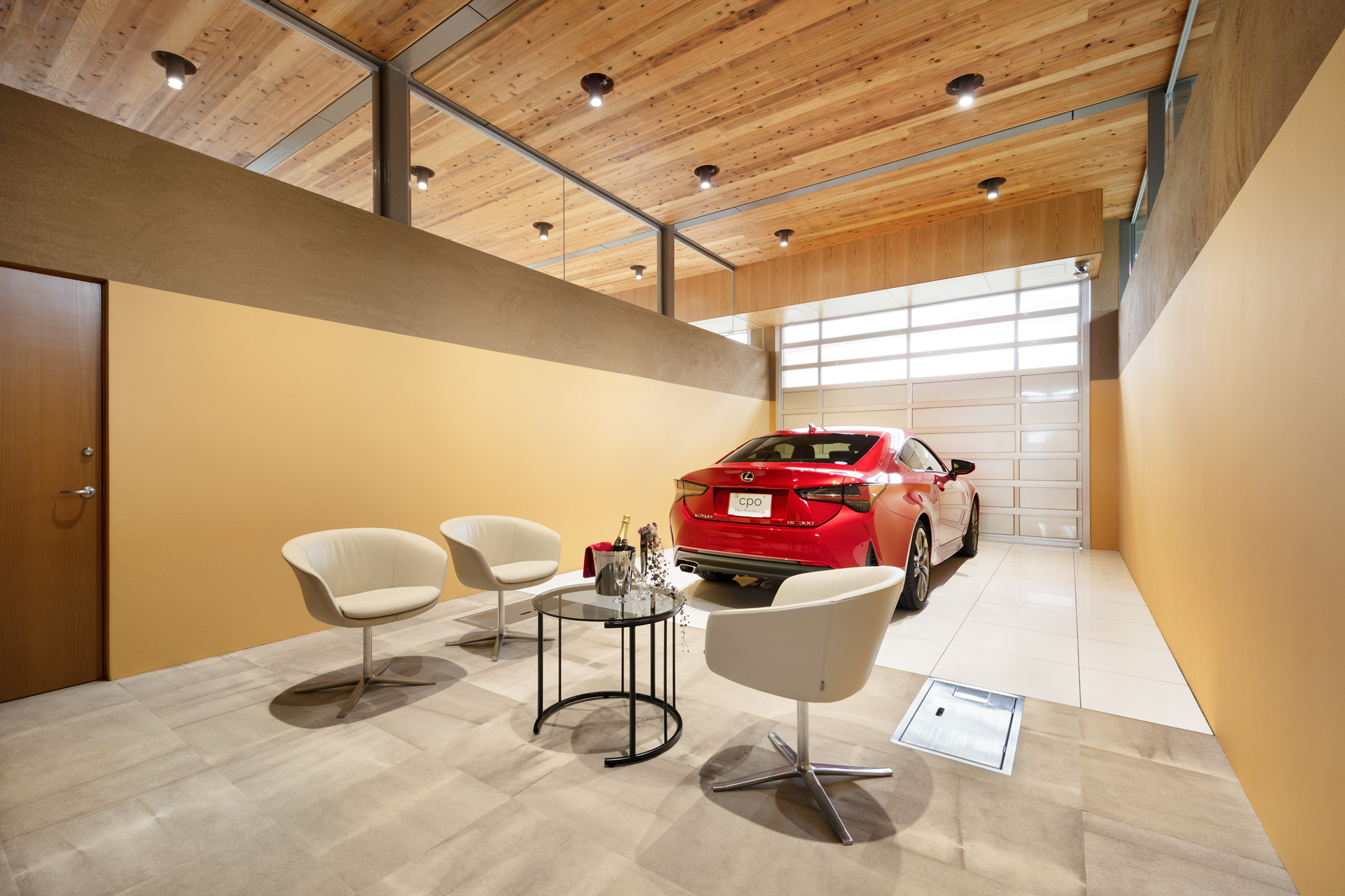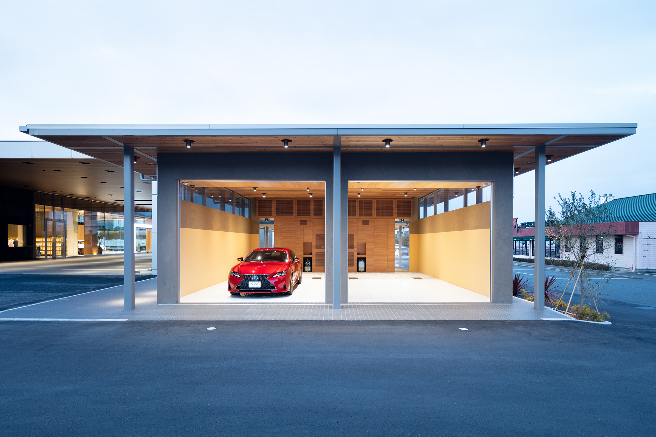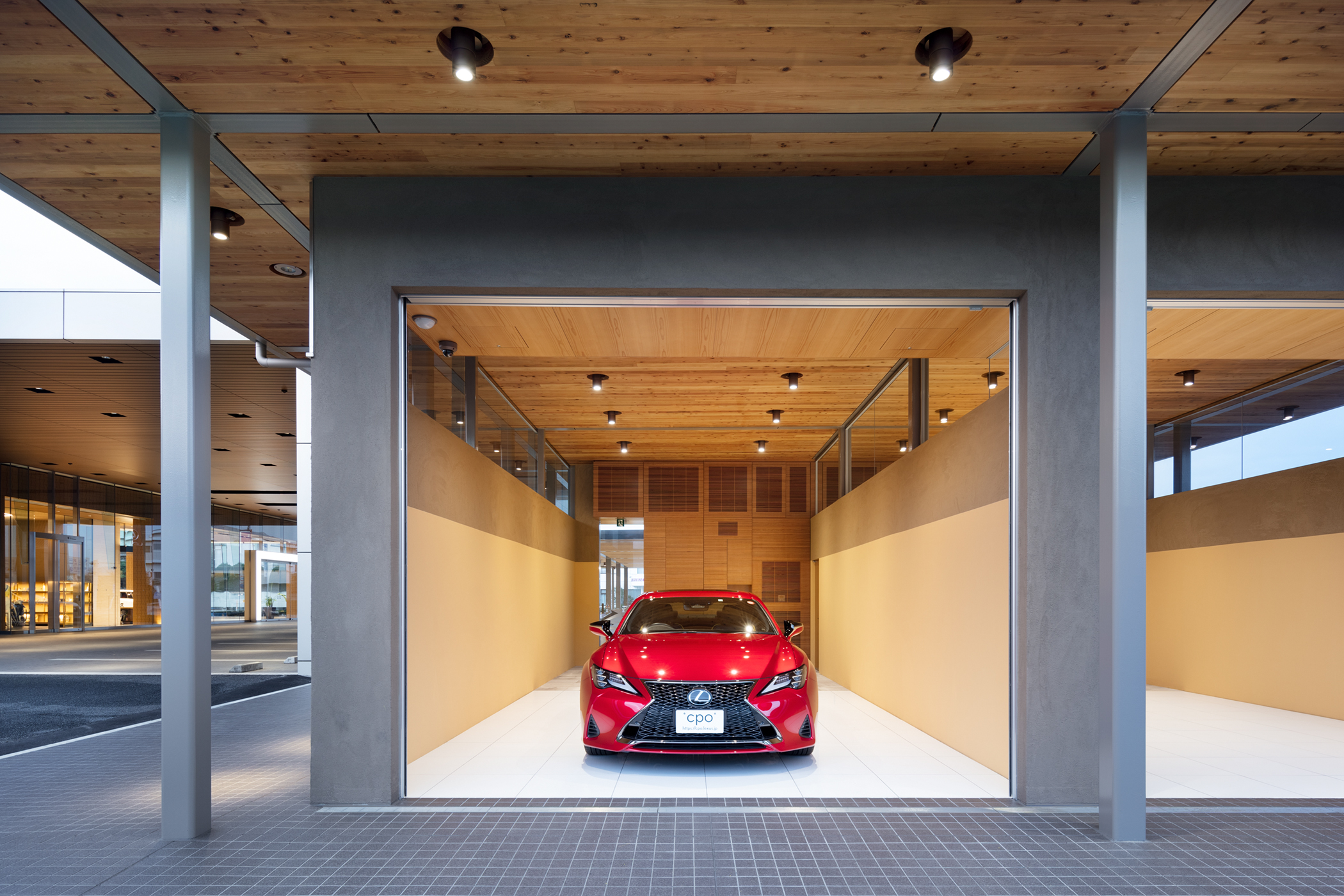 山口県周南市に計画した、レクサスの認定中古車“CPO”展示スペースとプレゼンテーションルームと呼ばれる納車スペースである。