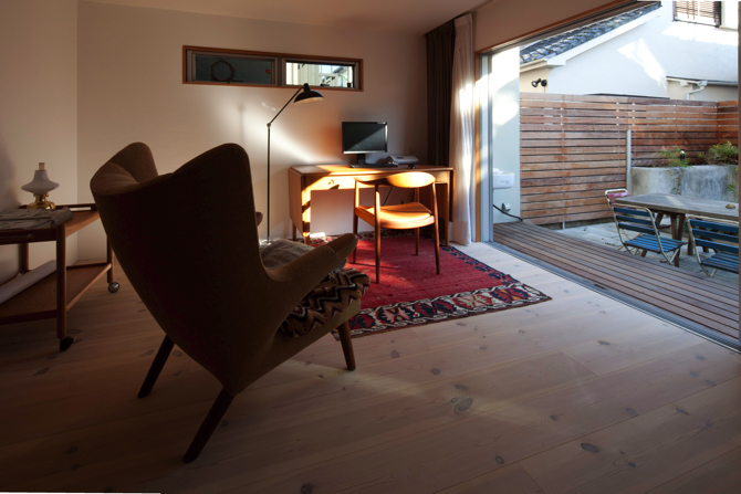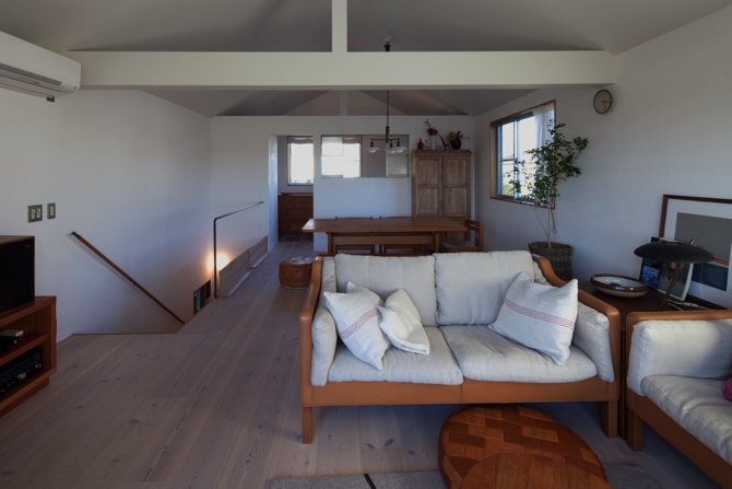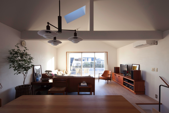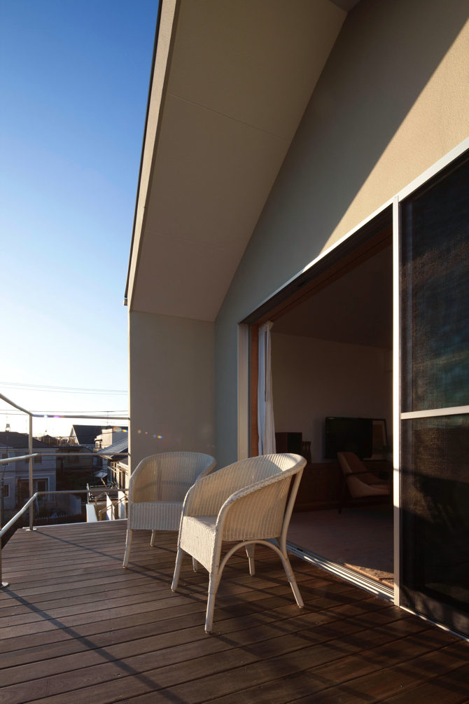 The house was planned in a quiet residential area in Tokyo. The required area of the house could have been accommodated in a two-storey building, but by building it on three floors, a garden space was secured on the south side of the house. By doing so, the ground floor space, which tends to be dark, is well lit and a room connected to the garden was created. In addition, the living room was placed on the third floor, where the environment is best, and a large balcony was installed on the south side. The kitchen was hidden from view from the living room by a wall, but near the ceiling, the wall was eliminated to connect the spaces and allow air to pass through from north to south, making it possible to live a life that relies on air conditioning as little as possible. On top of this, the insulation of the entire house has been upgraded to level 4, the highest level of performance in the housing performance assessment. The interior is a selection that fully demonstrates the client's taste in furniture production and sales.