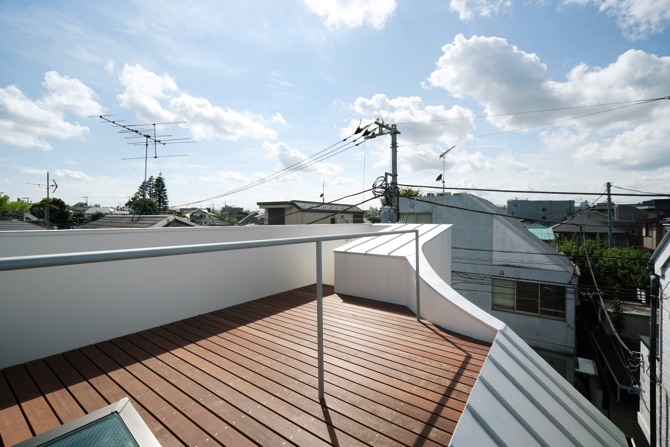 Because three levels and a roof terrace were planned in a small volume, the ceiling heights on each floor inevitably tend to be low. Therefore, it was decided to cut the ceilings in a wavy pattern, leaving minimal space for the ceiling structure and wiring for lighting etc. The roof terrace can be accessed from the third floor, and we hope that the residents will continue to enjoy a lifestyle that they cannot experience in their flats.
