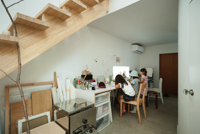 Considering this, it was important to provide a space with as much flexibility as possible, so that the first floor could fulfill a variety of roles. To this end, the idea came to mind of loosely and fluidly exploring the depths and relationships of the space, rather than separating each individual room with walls.