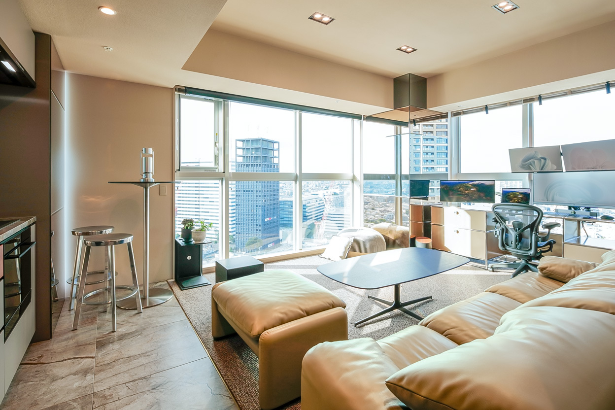 窓から広がる東京の風景と室内環境が融合した、ここにしかない環境を作れないかと考えた。
