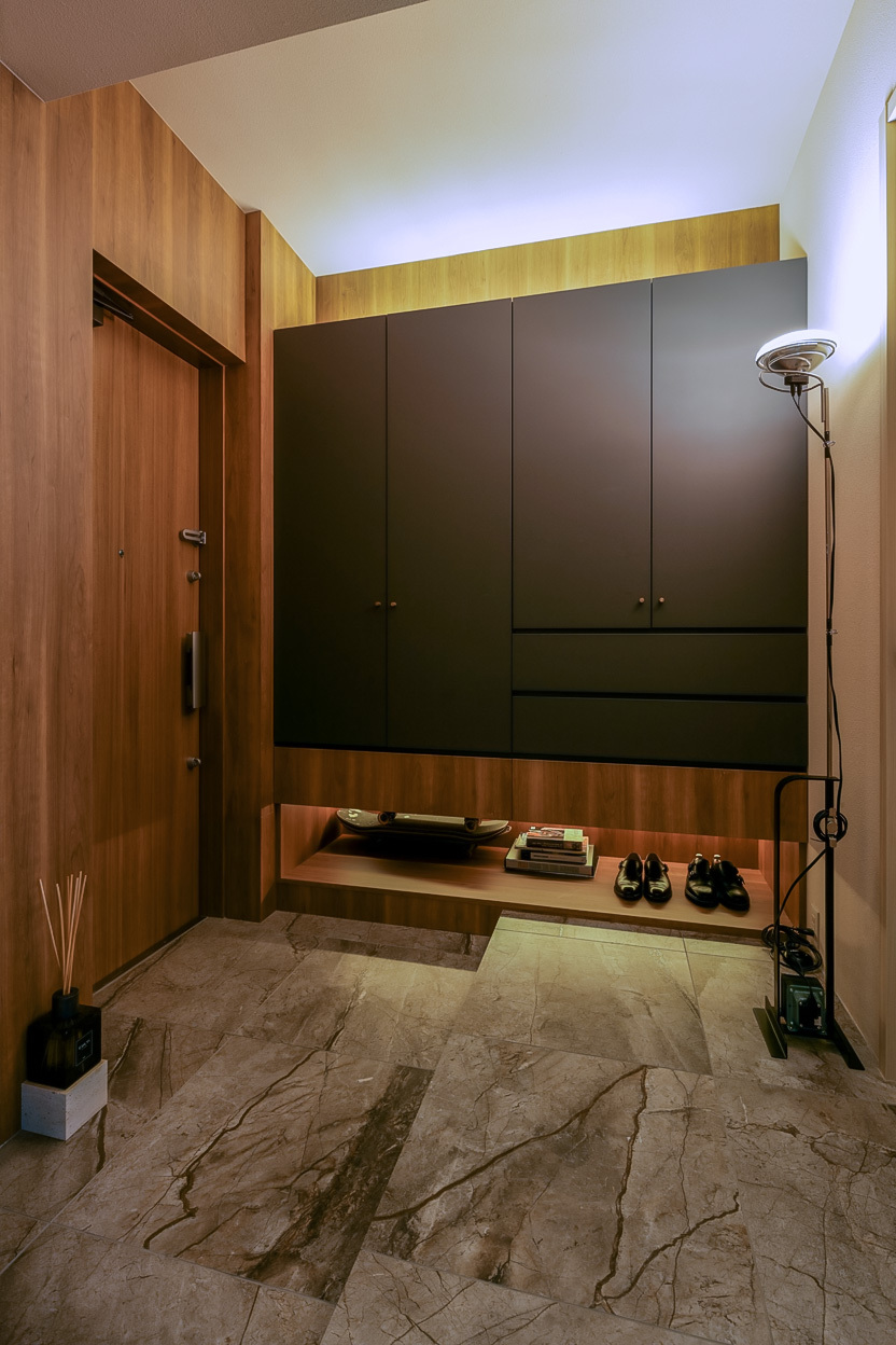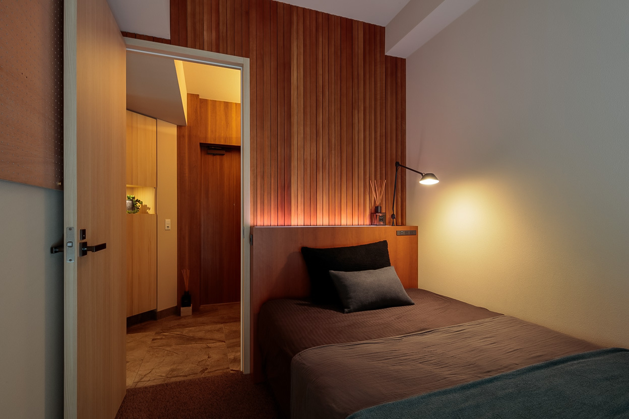 We also tried to keep the design as simple as possible, choosing materials with a nice texture for the walls and floors and eliminating baseboards for the fit-out. By choosing beige instead of white as the base color for the interior, we aimed to create a space that is enveloped in harmony with the soft Tokyo sunset.