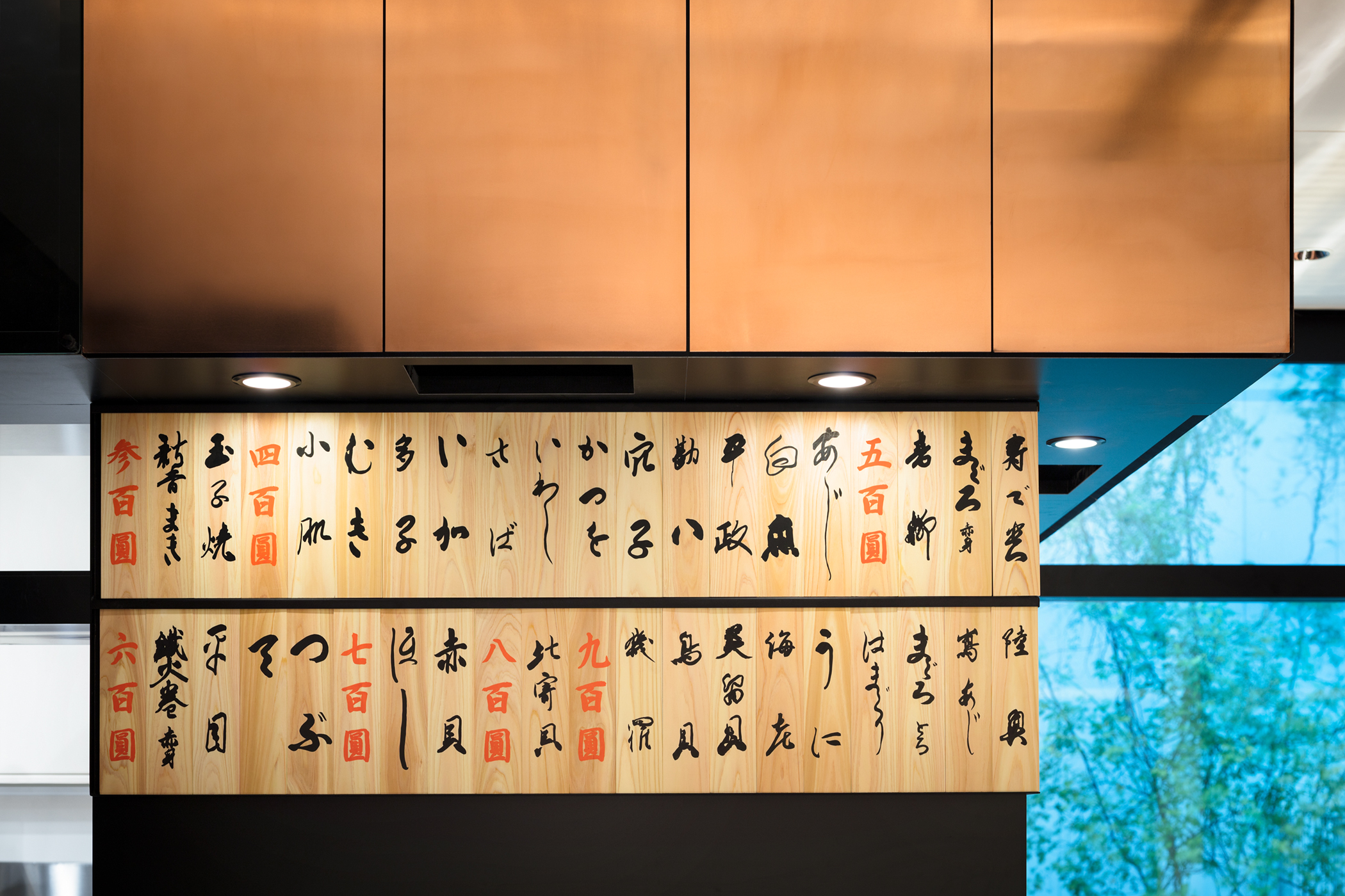 など、防火規制が厳しい豊洲市場の中で、できる限り温かい素材を感じる店舗を目指すと同時に、築地での「龍寿司」を贔屓にしているお客様から以前と変わらず愛されるお店になれば考えた。